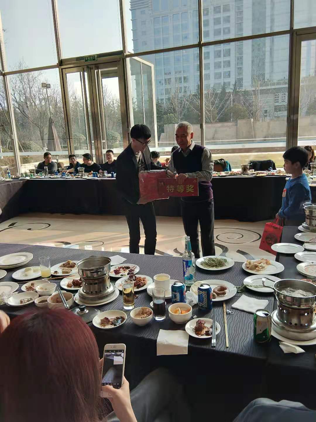 會議結束后公司進行了聚餐,大家歡聚一堂,分別進行了抽獎互動及游戲環節,同時公司領導也對年會期間仍奮斗在工作崗位上的同事表示了感謝!