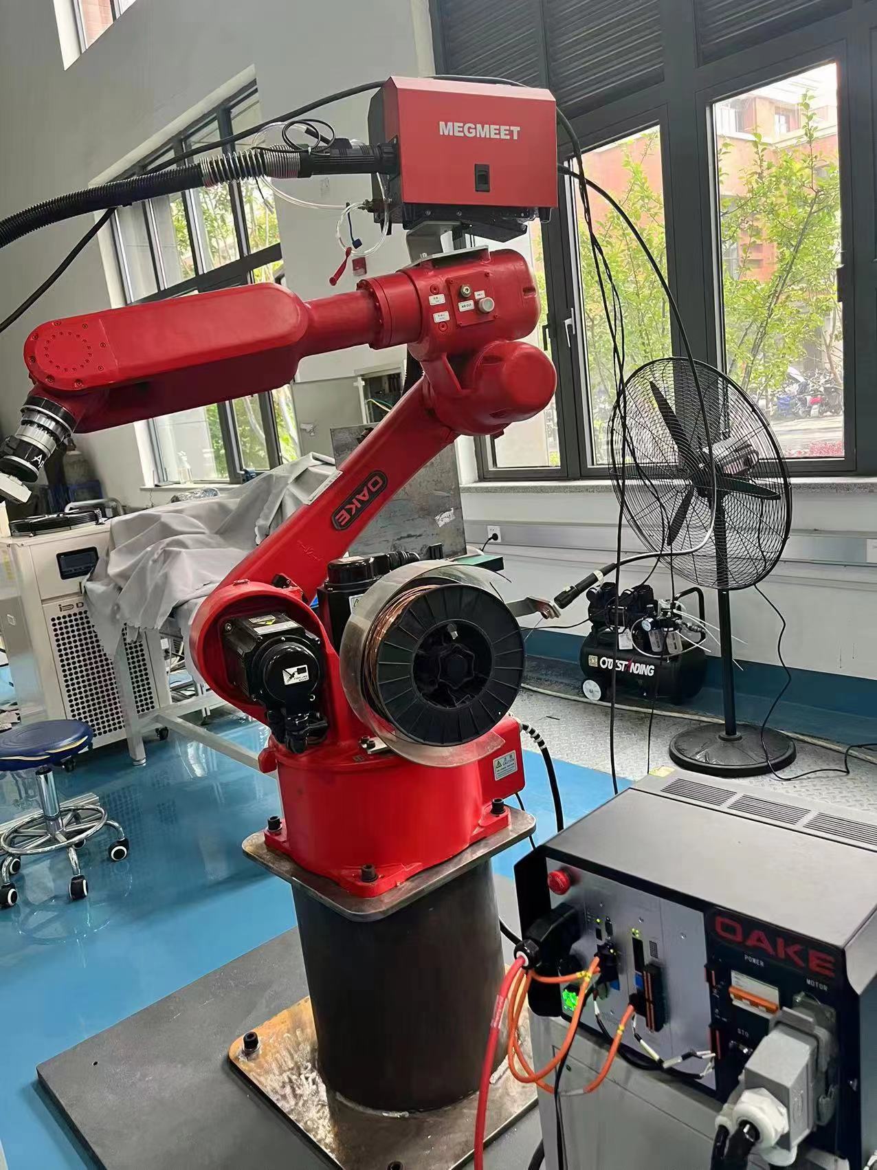 在展出前,我司負(fù)責(zé)任人與曹教授團(tuán)隊(duì)進(jìn)行了詳細(xì)的技術(shù)溝通和交流,為機(jī)器人系統(tǒng)、焊接設(shè)備系統(tǒng)和3D線激光傳感器系統(tǒng)的聯(lián)合調(diào)試做好了充分準(zhǔn)備。該智能機(jī)器人焊接單元主要由六軸工業(yè)機(jī)器人系統(tǒng)、焊接設(shè)備系統(tǒng)和3D線激光傳感器系統(tǒng)等三部分組成。其中,我司負(fù)責(zé)六軸工業(yè)機(jī)器人系統(tǒng)和焊接設(shè)備系統(tǒng)的研發(fā)設(shè)計(jì)工作,曹教授團(tuán)隊(duì)負(fù)責(zé)3D線激光傳感器系統(tǒng)的研發(fā)設(shè)計(jì)工作。