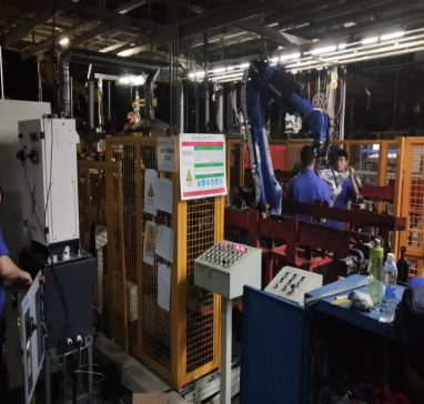 焊接工藝的定制開(kāi)發(fā),多臺(tái)機(jī)器人聯(lián)動(dòng)。
