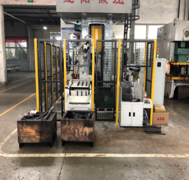 特殊環(huán)境(高溫、高油污、污染等)的機(jī)器人機(jī)床加工上下料系統(tǒng)-- 400T螺栓頭熱墩上下料